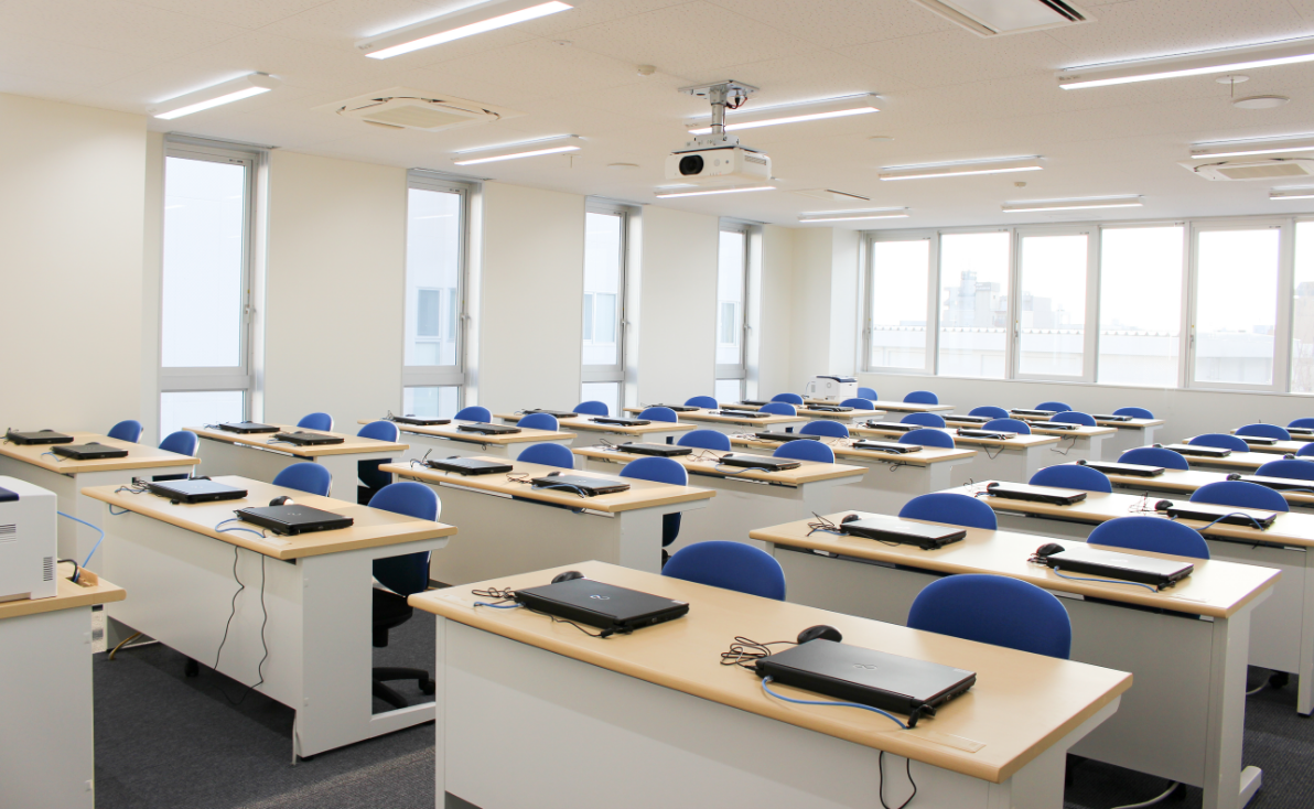 約40台のパソコンを設置。情報リテラシーの授業を行ったり、学生がパソコンを使って調べ物をしたりできる教室です。