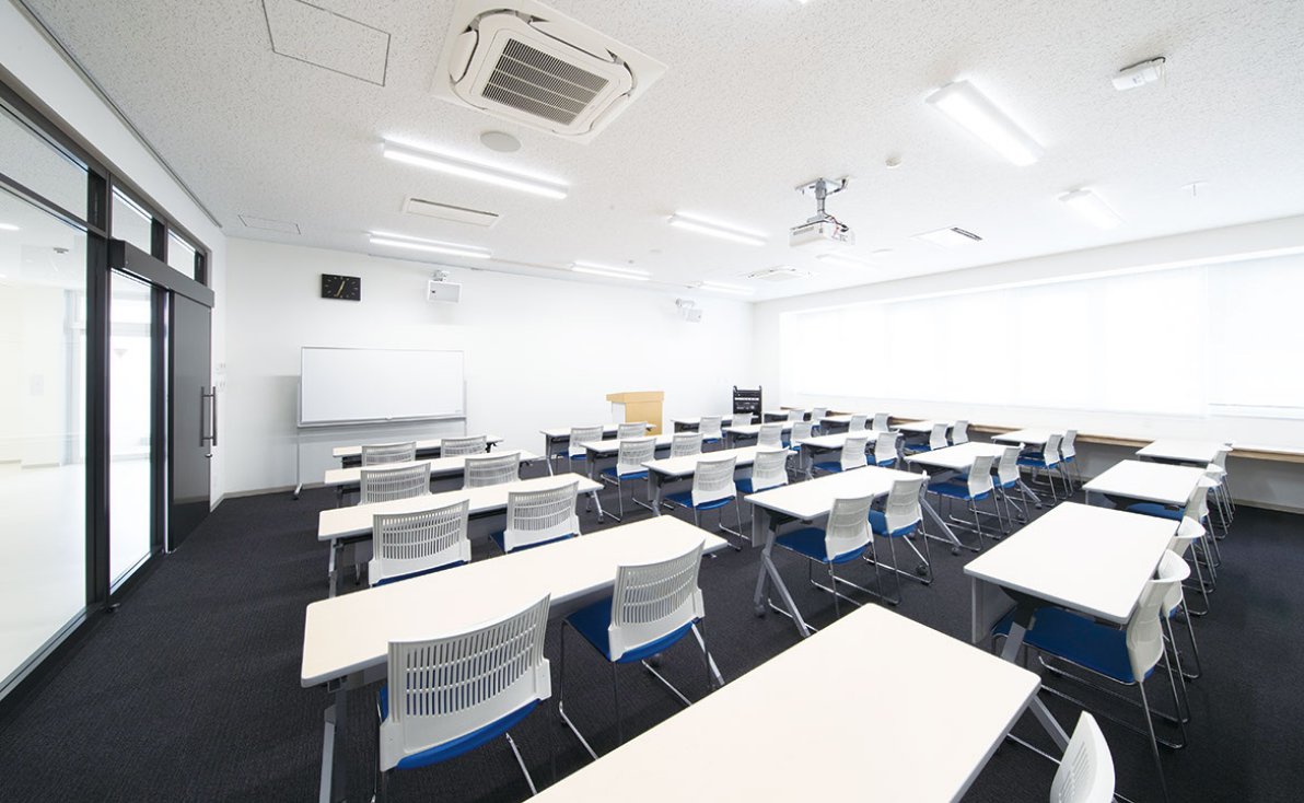 約200人が収容可能。入学式や講演会をはじめ、学会や発表会にも使用しており、数部屋に分かれて使用することも可能です。