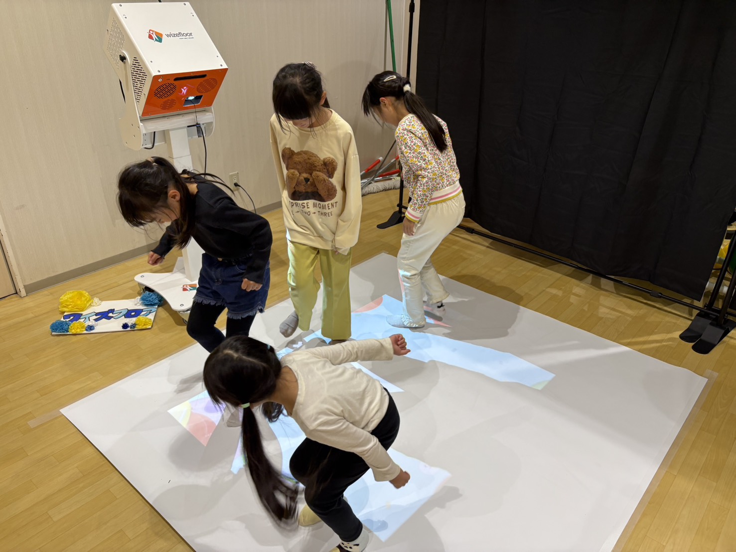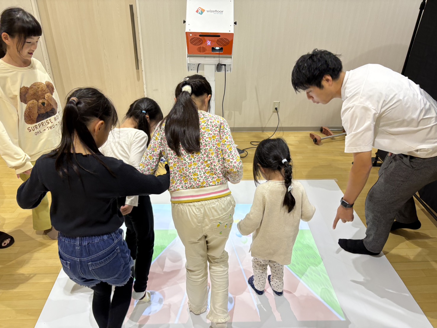 理学療法科・作業療法科の学生は、eスポーツやWizeFloor(ワイズフロア)を通して子どもたちと交流。体を動かしながら楽しめるゲームを一緒に体験し、遊びの中にリハビリ的な要素を取り入れる工夫を行いました。