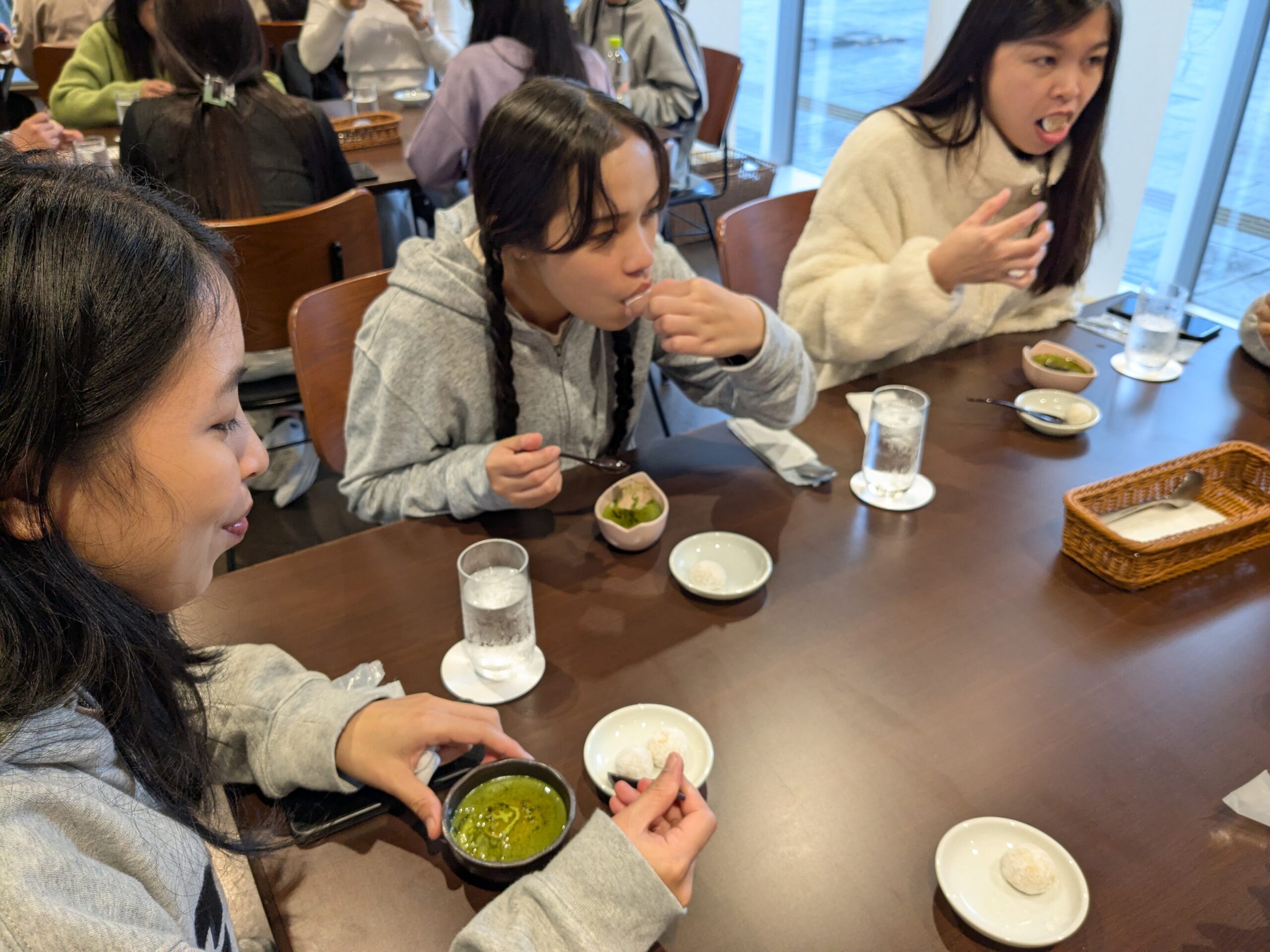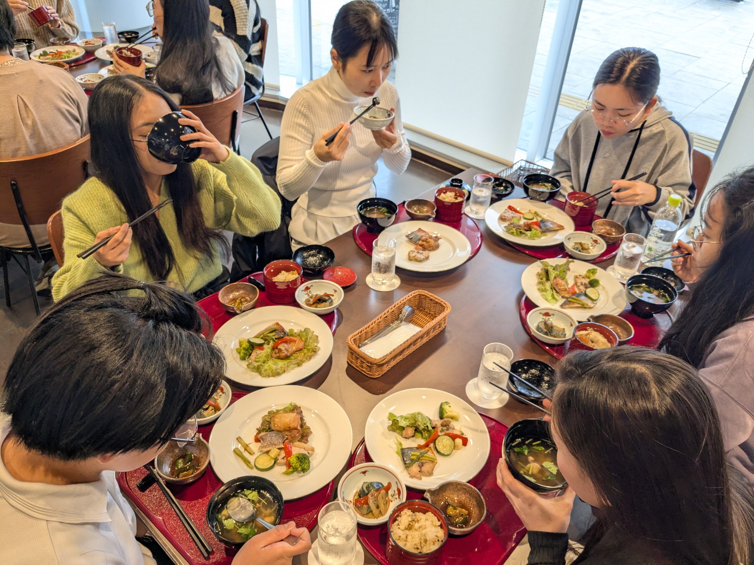 介護福祉科の学生にはフィリピン出身の留学生も多く、母国とは違う日本の食文化に触れながら、学生同士が自然に会話を交わす和やかな交流の時間となりました。