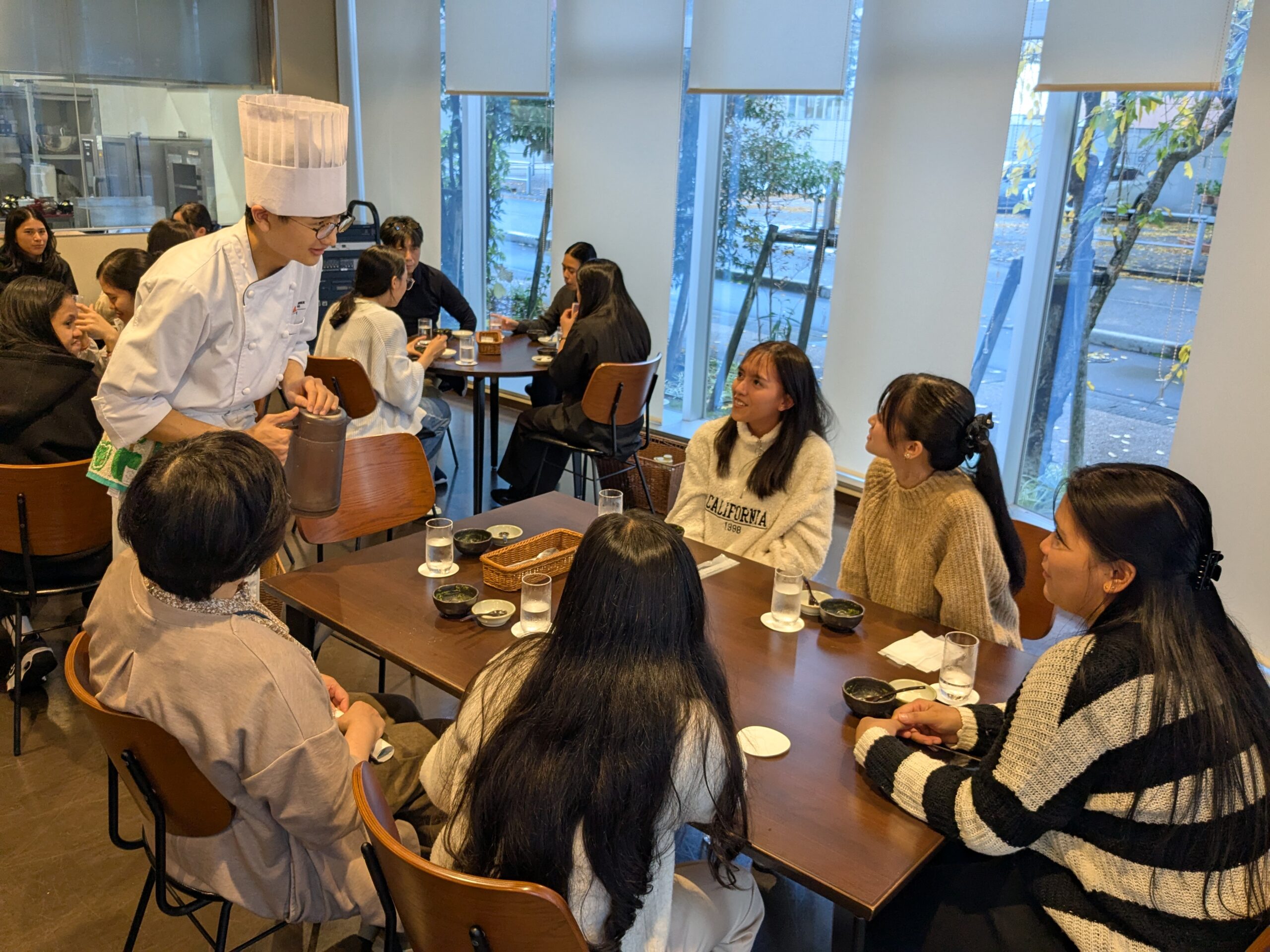 富山調理製菓専門学校「レストラン アオイケ」にて、介護福祉科の学生を対象とした国際交流イベントを開催しました。