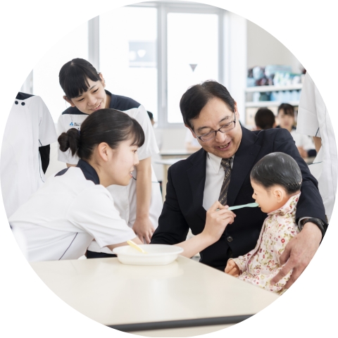 高齢化や障がいにより日常生活が困難な人を対象とし、心身の状況に応じた介護を行う「介護福祉士」を目指して必要な介護知識・技能を身につけます。