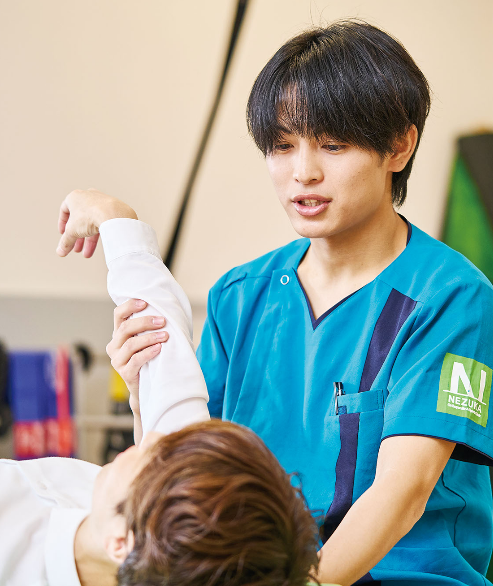 実際の現場は、患者様によって対応の仕方もさまざまです。在学中は、経験豊富な先生方から、さまざまなケースとその評価方法を教わっていたことやクラスメイトとの繰り返し学習により、幅広い知見を習得でき、今も大きな戸惑いもなく現場にたてています。