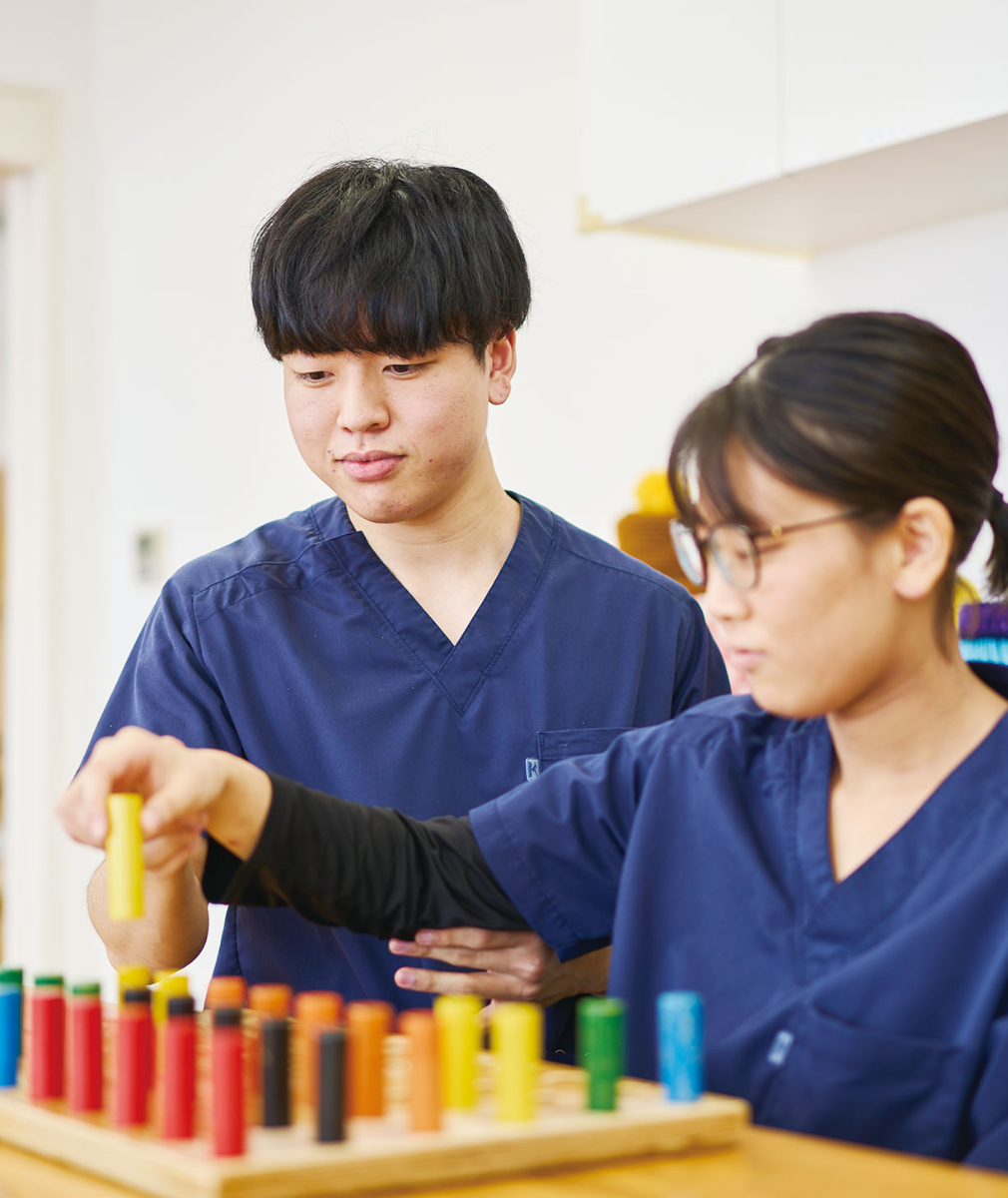 在学中は、豊富な実習時間と臨床現場を数多く想定した知識や実技をひとつひとつ、体系的にわかりやすく教えていただけたことで、安心して実習にのぞむことができたし、就職をした現在も、評価や動作分析等に、ほとんど戸惑うことなく仕事ができています。