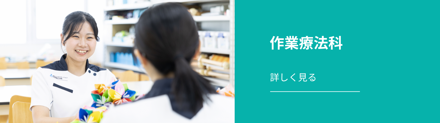 病気やケガで身体や精神に障がいがある人を対象に、日常生活の動作訓練、手芸・陶芸などの創作活動や、ゲーム・スポーツなどを利用した機能回復、生活の自立、社会復帰などを行うスペシャリスト。精神的意欲を引き出すことも重要なポイント。