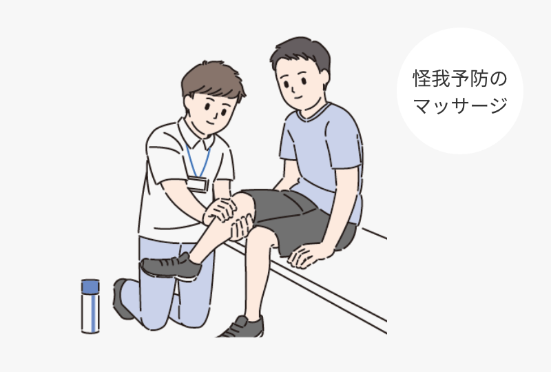 スポーツ選手が最大限のパフォーマンスを発揮できるよう、あらゆる面からサポートするスペシャリスト。スポーツ選手の健康管理、ケガの予防や応急処置、テーピング、コンディショニング管理など役割は多岐にわたる。